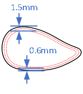 a左侧顶点沿水平对称轴方向左移0.5mm,上下两顶点均在理论边界与0.6mm缝隙中间(即在竖直轴向超出0.6mm缝隙0.3mm)