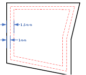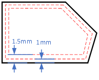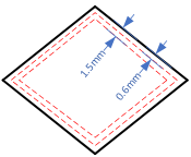 a顶边位于理论边界上,左侧边与右上侧边均超出1mm缝隙0.5mm,其余边均超出理论边界0.5mm。