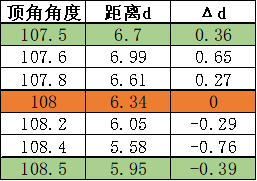 在顶角、垂角、总高三个尺寸上对角片1进行区分,参考零件为5号,顶角108度,垂角90度,总高40mm。顶角分为107.5度和108.5度两种;垂角分为89.6度和89.4度两种;支板高度分为40.2mm和40.4mm两种;支板宽度分为31.6mm和31.8mm两种;支板位置偏差分为0.2mm和0.3mm两种。除此之外,设置四个非控制变量组,即每个尺寸都有所变化,非控制变量组的零件尺寸变化可以与控制变量组的零件形成尺寸变化趋势,可以达到6组实验数据,满足实验要求。上述非控制变量组零件中,较相似的3号和7号零件与参考零件区别为顶角±0.4度,垂角0.7度和0.5度,支板高度±0.3mm,支板宽度±0.3mm,支板位置偏差均为0.4mm。极相似的4号与6号零件与参考零件的区别为顶角±0.2度,垂角0.3度和0.2度,支板高度±0.1mm,支板宽度±0.1mm,支板位置偏差均为0.1mm。上述零件总计15种。