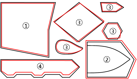 a左侧与右上两顶点均沿对称轴方向超出理论边界0.5mm,左下与右侧两顶点均沿对称轴方向超出0.6mm缝隙0.3mm,其余顶点位于理论边界上。