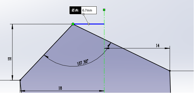 a左上角点沿着顶边左移0.5mm,最右侧顶点位于0.6mm缝隙上,其余顶点位于理论边界上。