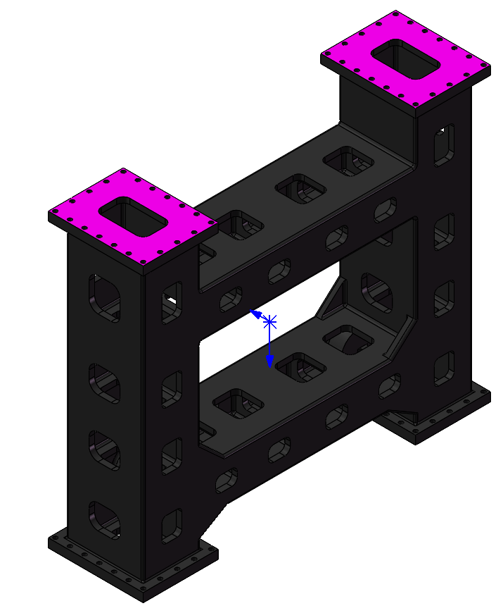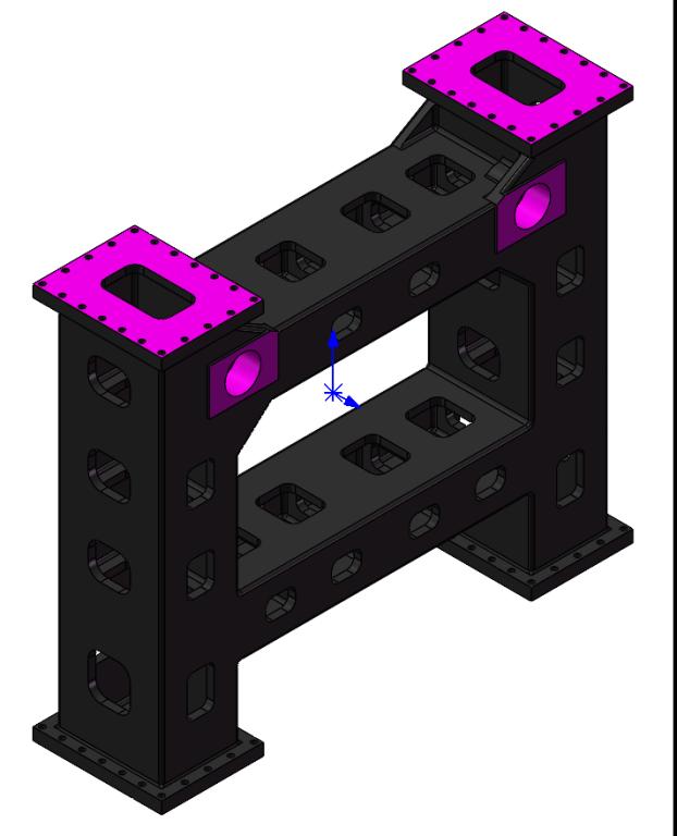 在原有铸件的基础上进行精加工。加工底座、立柱A、立柱B、横梁、Z轴滑块、X轴滑块A、X轴滑块B、共计8件,对加工面进行精加工,并钻孔以满足装配需求。导轨安装面需刮研。