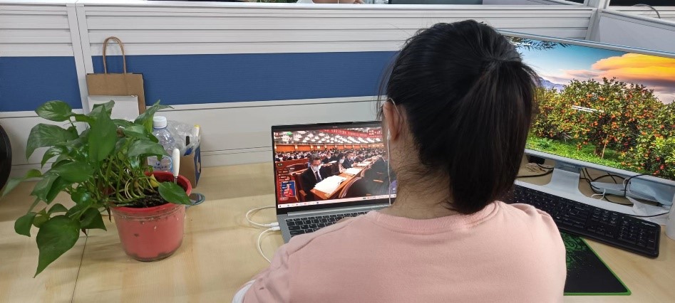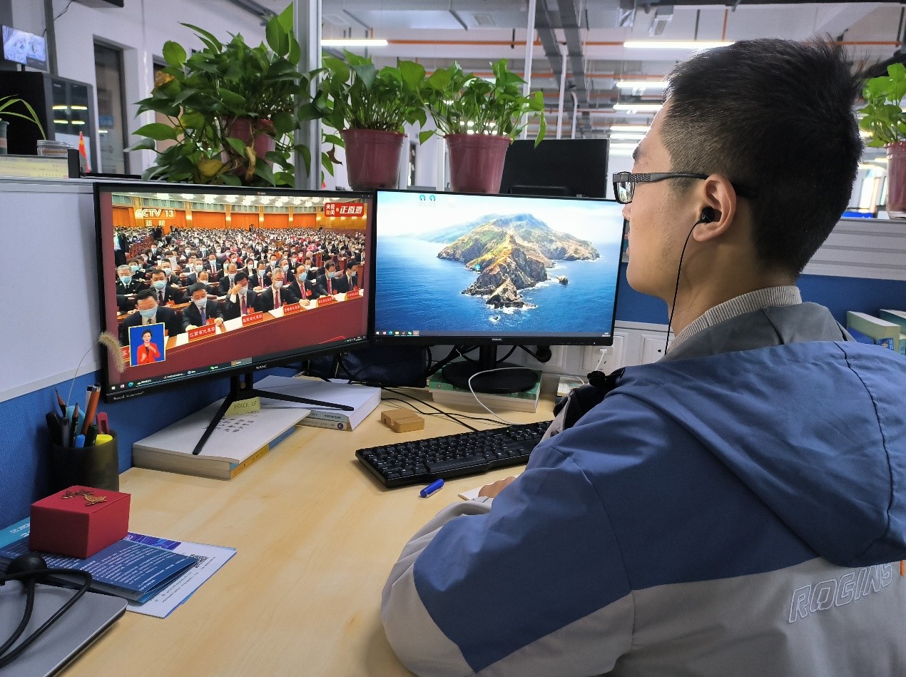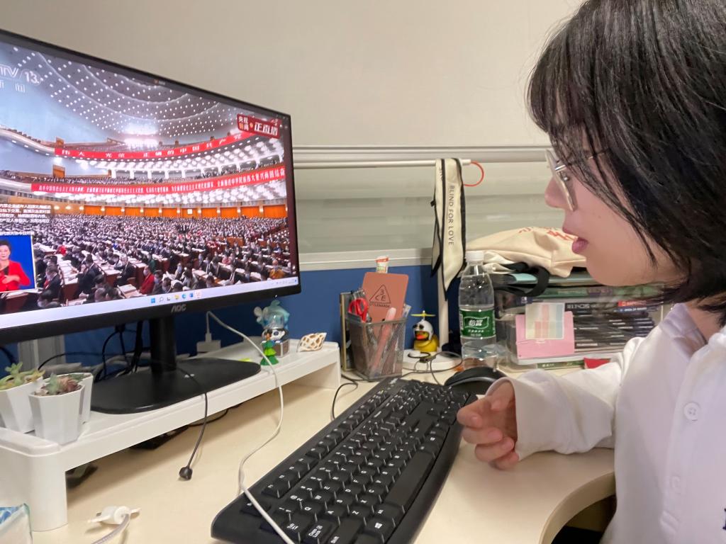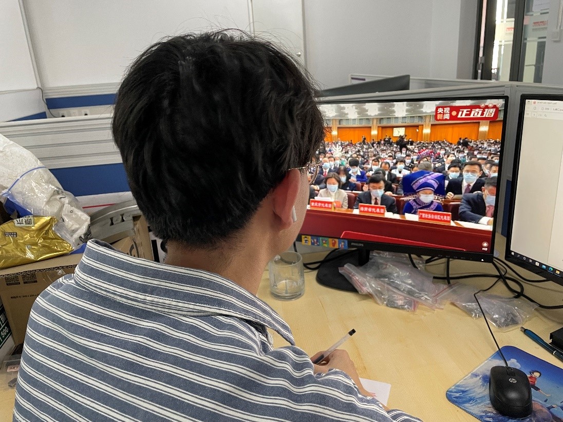 硕0004党、团支部组织党员、团员集体收看党的二十大上的报告。报告内容引发同学们的热议。