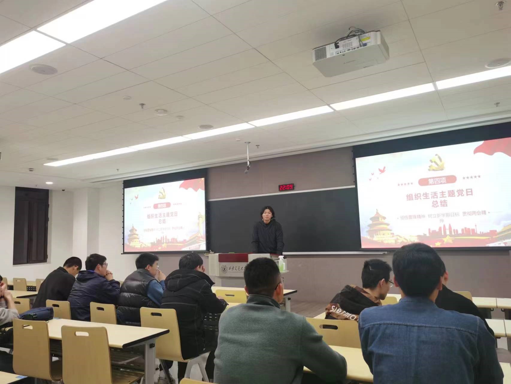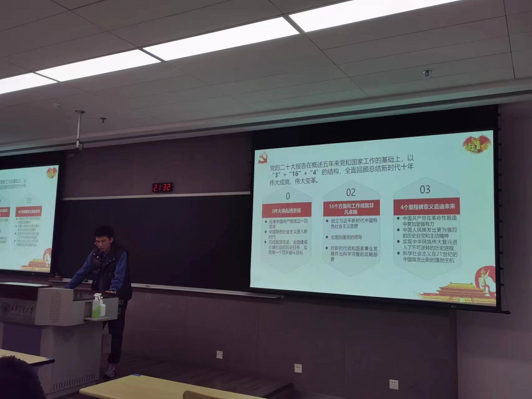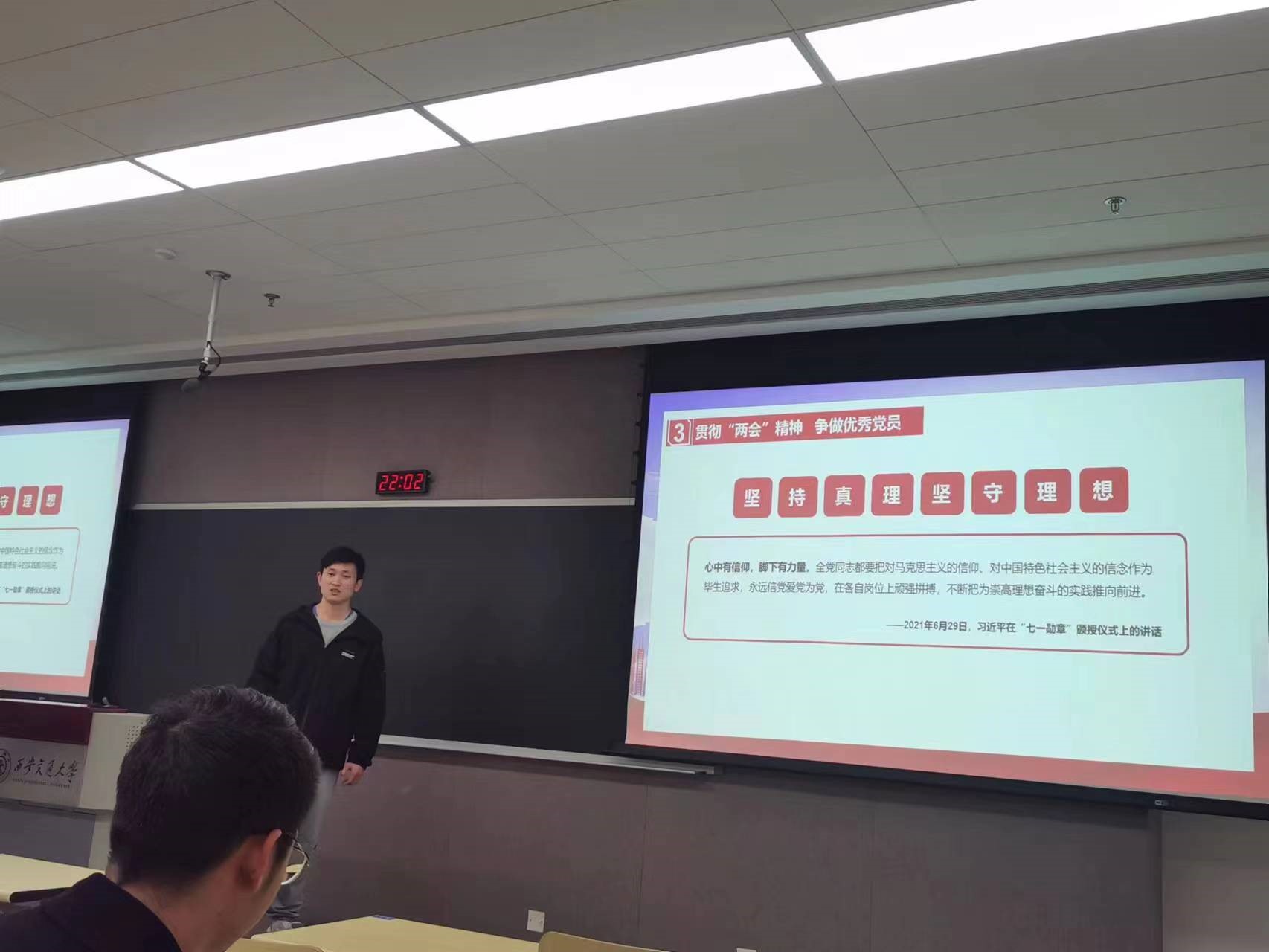 接着由冯柳铭同志以开学第一课党日活动为主题分别讲述了研究生党支部的建设、党的二十大精神、以及疫情防控。