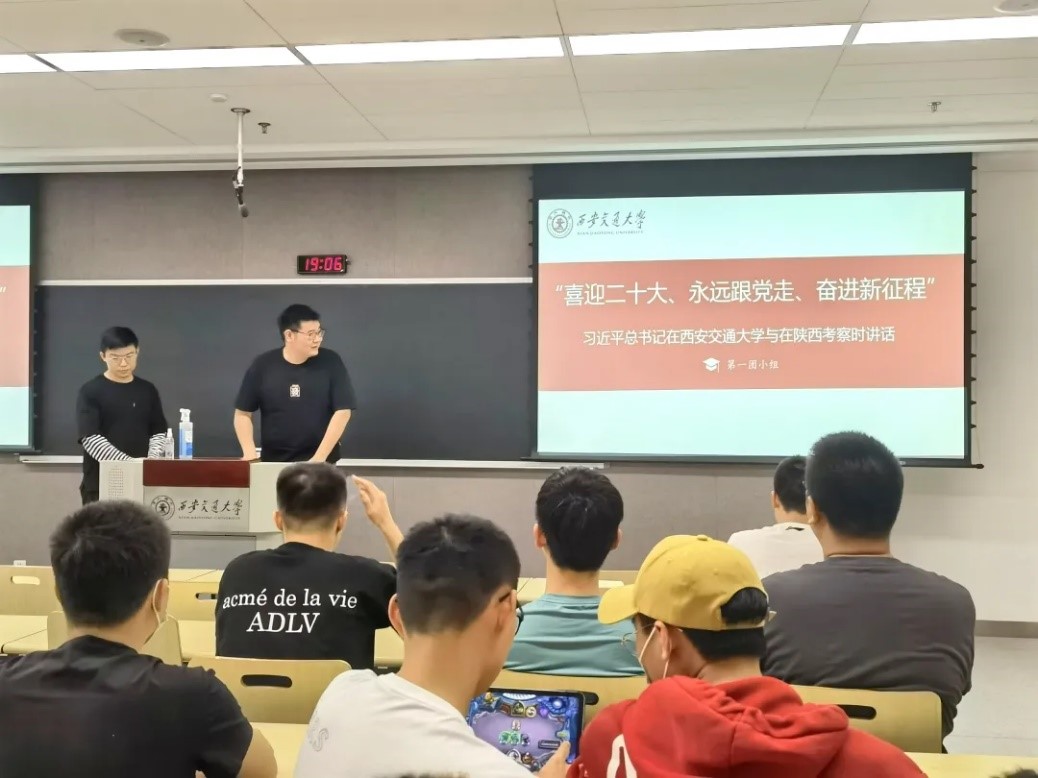 为了迎接党的二十大的召开,深入学习贯彻习近平新时代中国特色社会主义思想,团结引领支部成员坚定不移跟党走,为中国特色社会主义的发展而努力奋斗。同时也为了进一步增强党团班的一体化建设,加强党支部对团支部的引领和指导作用,增进党团支部成员的沟通和交流,进一步增强党团支部的活力和凝聚力。2022年4月26日于机械馆2-6004,党支部牵头,以团为基础组织落实开展了硕士1002党团支部一体化建设项目“喜迎二十大、永远跟党走、奋进新征程”主题教育实践活动。