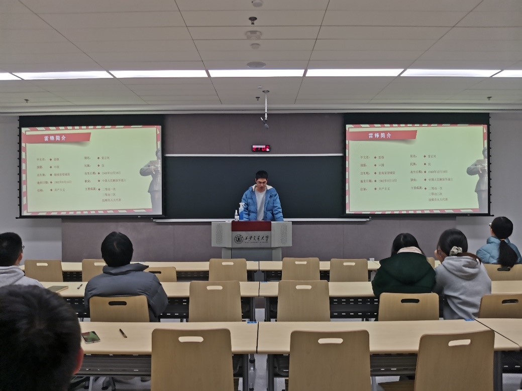随后,丁毅同志分享了自己在湖南省长沙市望城区雷锋纪念馆的参观之旅,讲述了自己参观雷锋塑像、雷锋展馆与党史馆的过程,在此过程中不但学习到了雷锋同志的“钉子精神”,也不断反思着自身党性修养的不足。然后丁毅同志分享自己心中的雷锋精神,指出自己要在学习上学习雷锋精神、在生活中发扬雷锋精神、在社会中践行雷锋精神。最后是雷锋精神知识竞答环节,支部同志们热情高涨,纷纷踊跃回答问题。