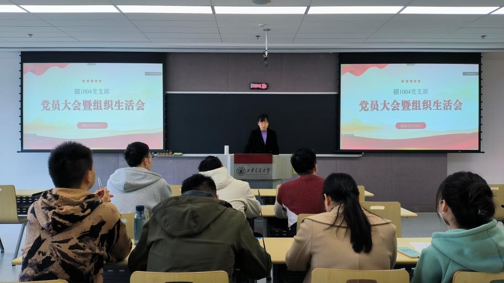 硕1004党支部召开了党员大会暨组织生活会。会议由硕1004党支部书记刘桂蕾同志主持,全体党员参加,创新港校区党员在二号巨构6003教室参会,曲江校区党员在西五楼A328会议室线上参加,会议主要分为三个部分:一是学习“把雷锋精神代代传承下去——纪念毛泽东等老一辈革命家为雷锋同志题词六十周年”座谈会,二是对2022年度党支部工作进行总结回顾,三是进行民主评议党员。
