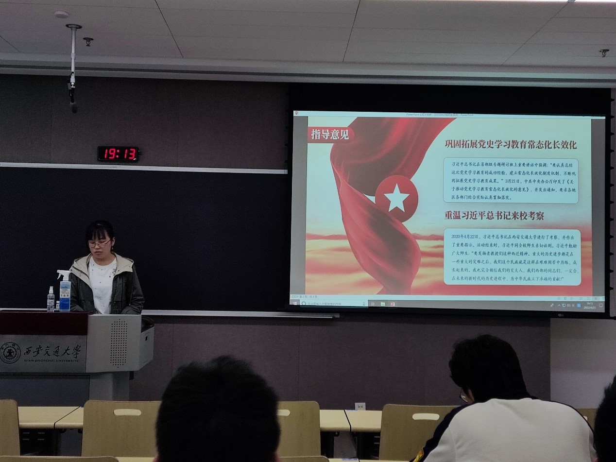 第二项为组织生活会,其主题是宣传知识产权及其保护。首先刘桂蕾书记传达上级党组织指示精神,简要介绍了本月组织生活会的其他几个主题,包括巩固拓展党史学习、教育常态化长效化、重温总书记来校考察等,并介绍会议的主要事项。