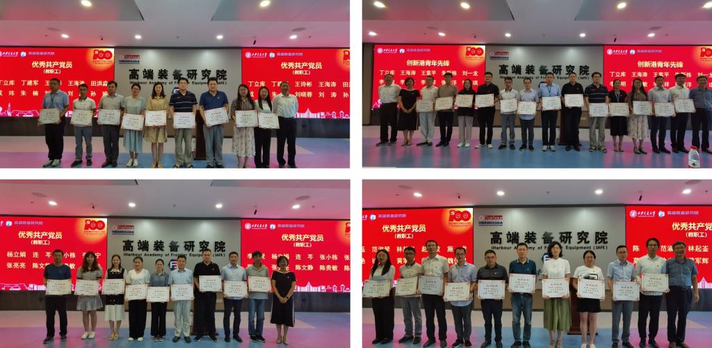 王朝晖、张敏、张新功共同为教职工优秀共产党员、研究生优秀共产党员和创新港青年先锋颁发荣誉证书。